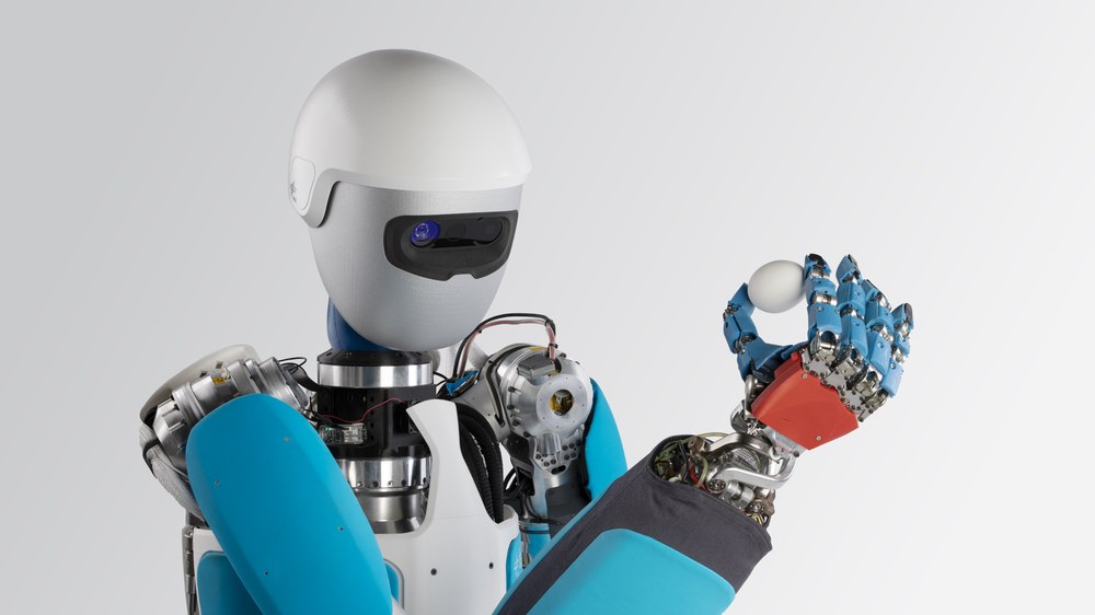 - David features variable stiffness actuation, enabling flexible response to environmental interactions., Designed for research, particularly in control methods for variable stiffness robots., Current focus includes exploring methods for self-awareness and complex task execution., The robot's design allows for individualized finger joint control, enhancing dexterity.